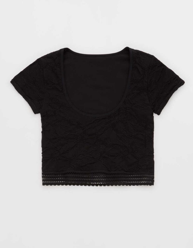 Superchill 無縫面料: Aerie 的 “Superchill” 布料名副其實,主打極致的舒適。這款採用了 紋理羅紋無痕面料,穿上身完全沒有接縫的異物感,像第二層皮膚一樣貼合。